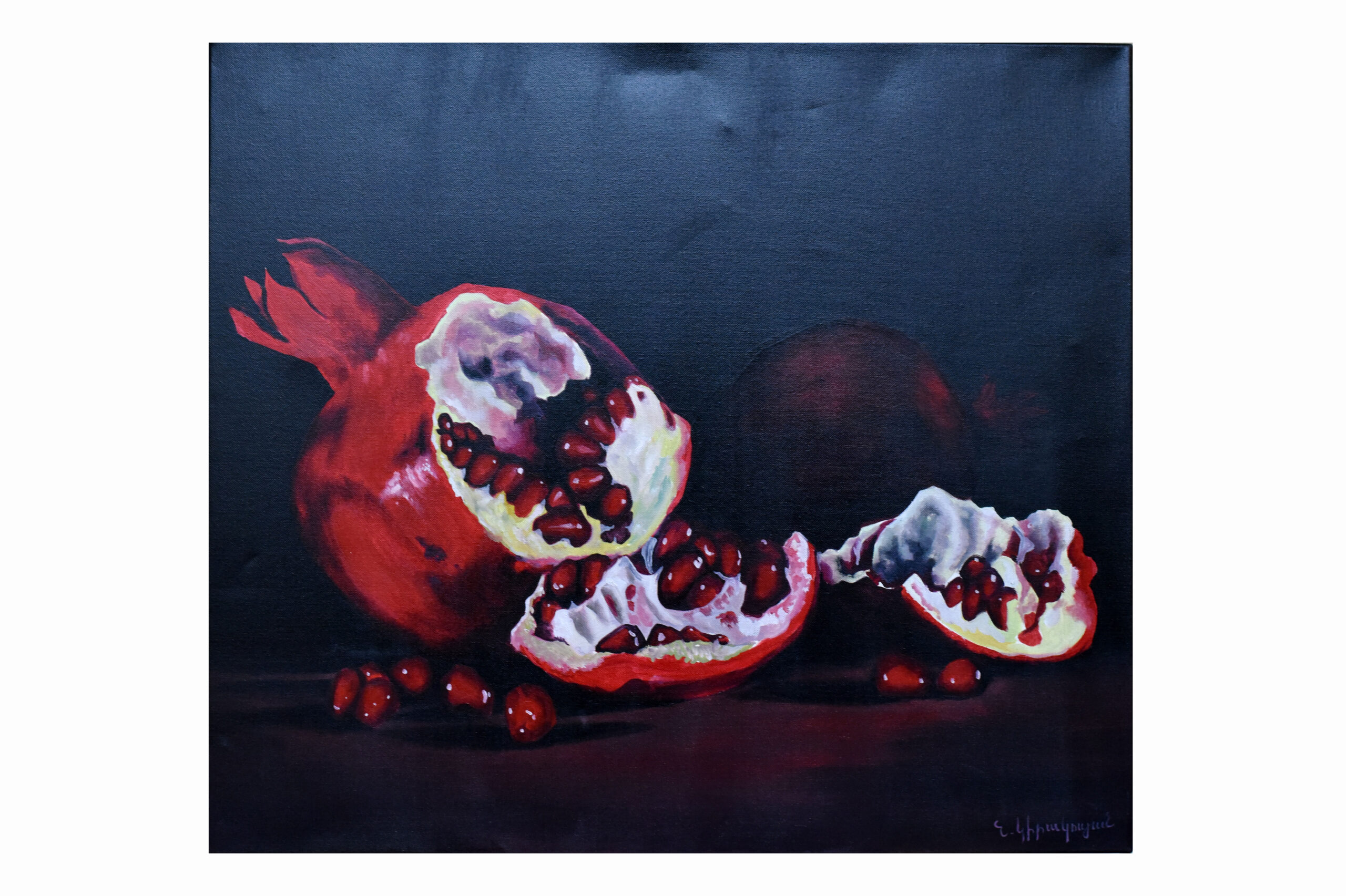 His passion for art is evident in the meticulous detail and lively hues he employs, making his fruit compositions not just representations of objects, but also expressions of joy and vitality. Through his work, Giragosyan seeks to celebrate the richness of Armenian culture and nature, often drawing inspiration from his surroundings.
