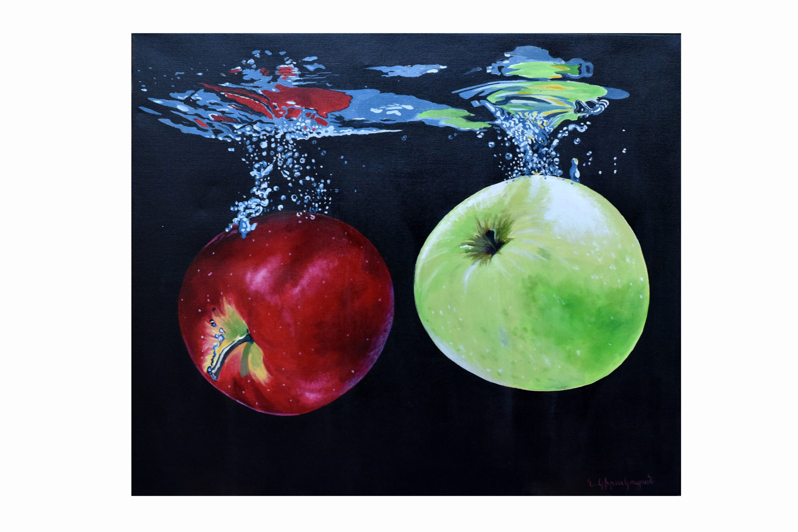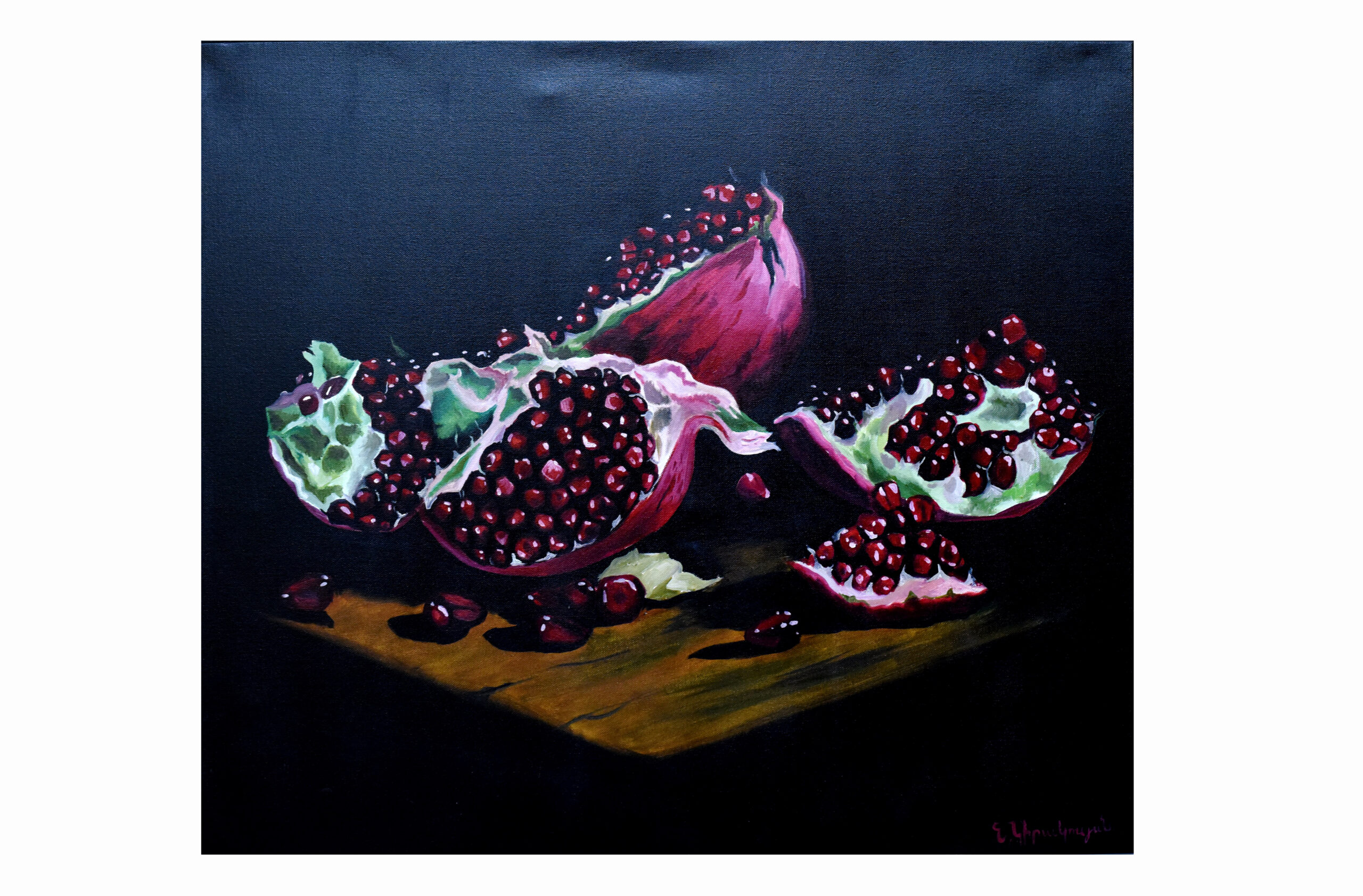 Nerses Giragosyan is a contemporary Armenian painter celebrated for his vibrant depictions of fruits and still life. His artwork is characterized by bold colors and dynamic compositions that breathe life into ordinary subjects, transforming them into captivating focal points. Giragosyan’s style is rooted in realism, yet his use of color and form often infuses a sense of surrealism, inviting viewers to experience the beauty of nature in an extraordinary way.
