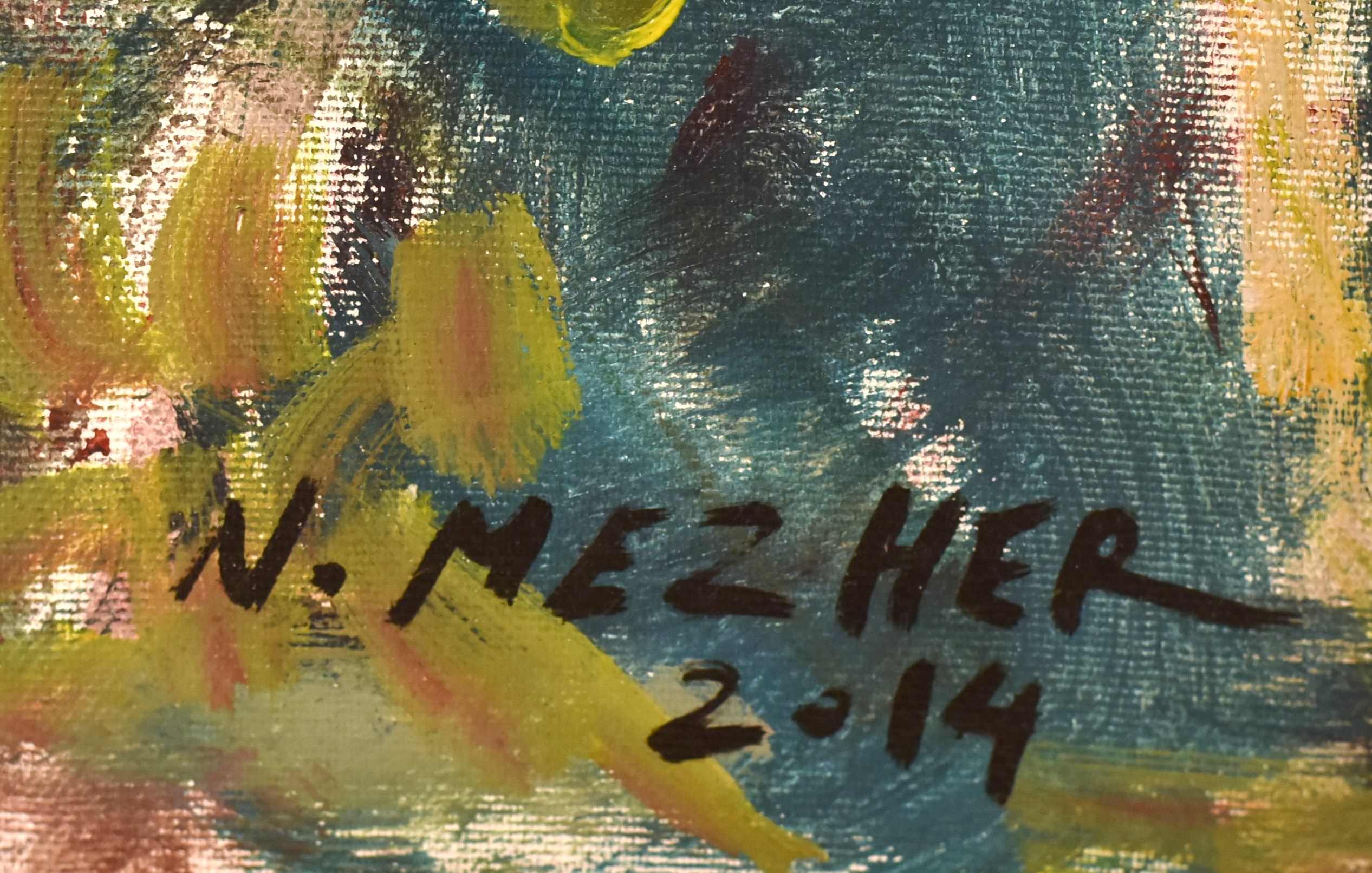 Nazem Mezher, born in 1965 in Lebanon, is a talented contemporary artist celebrated for his diverse range of works that encompass various mediums, including painting and installation. He has a distinctive style characterized by bold colors and intricate designs that reflect both personal and collective narratives. Mezher’s work often draws inspiration from his cultural background and contemporary themes, blending traditional elements with modern techniques.